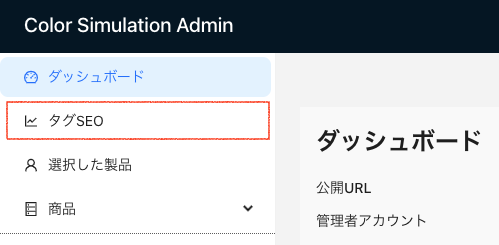 ダッシュボードの左上にある「タグSEO」メニューをクリックします。